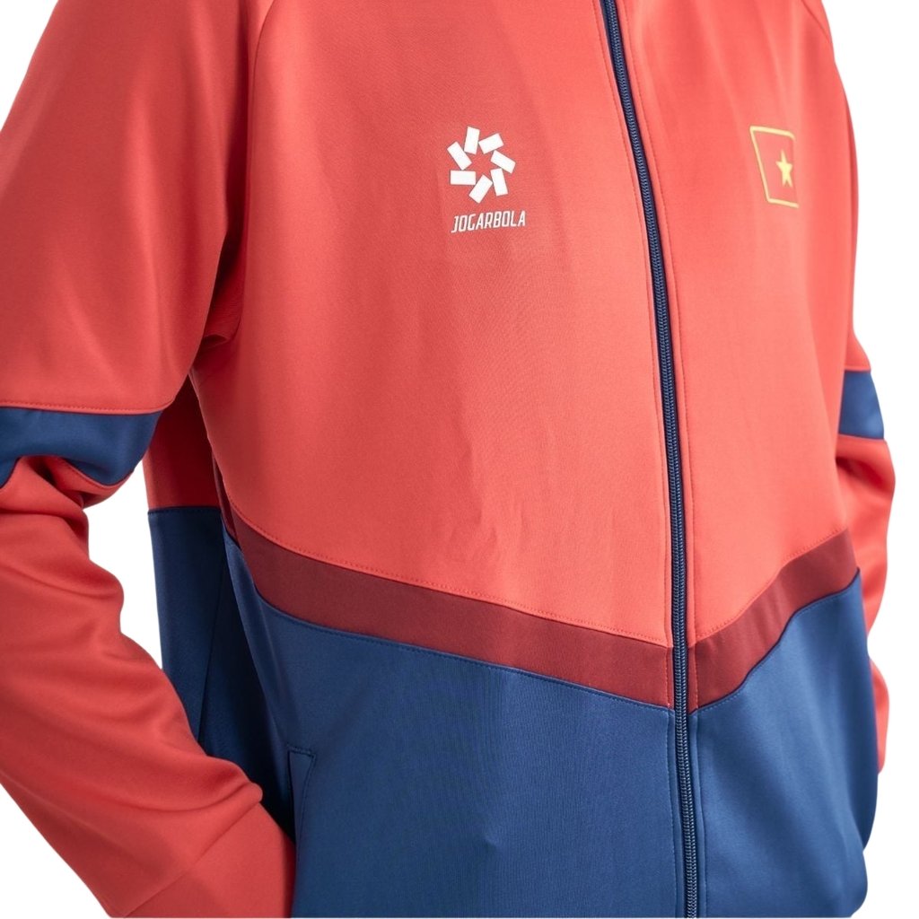 Áo suvec Đội tuyển bóng chuyền Việt Nam được thiết kế theo phong cách thể thao hiện đại với phối màu đỏ – đen chủ đạo, tạo cảm giác mạnh mẽ, dứt khoát và đậm chất thi đấu.