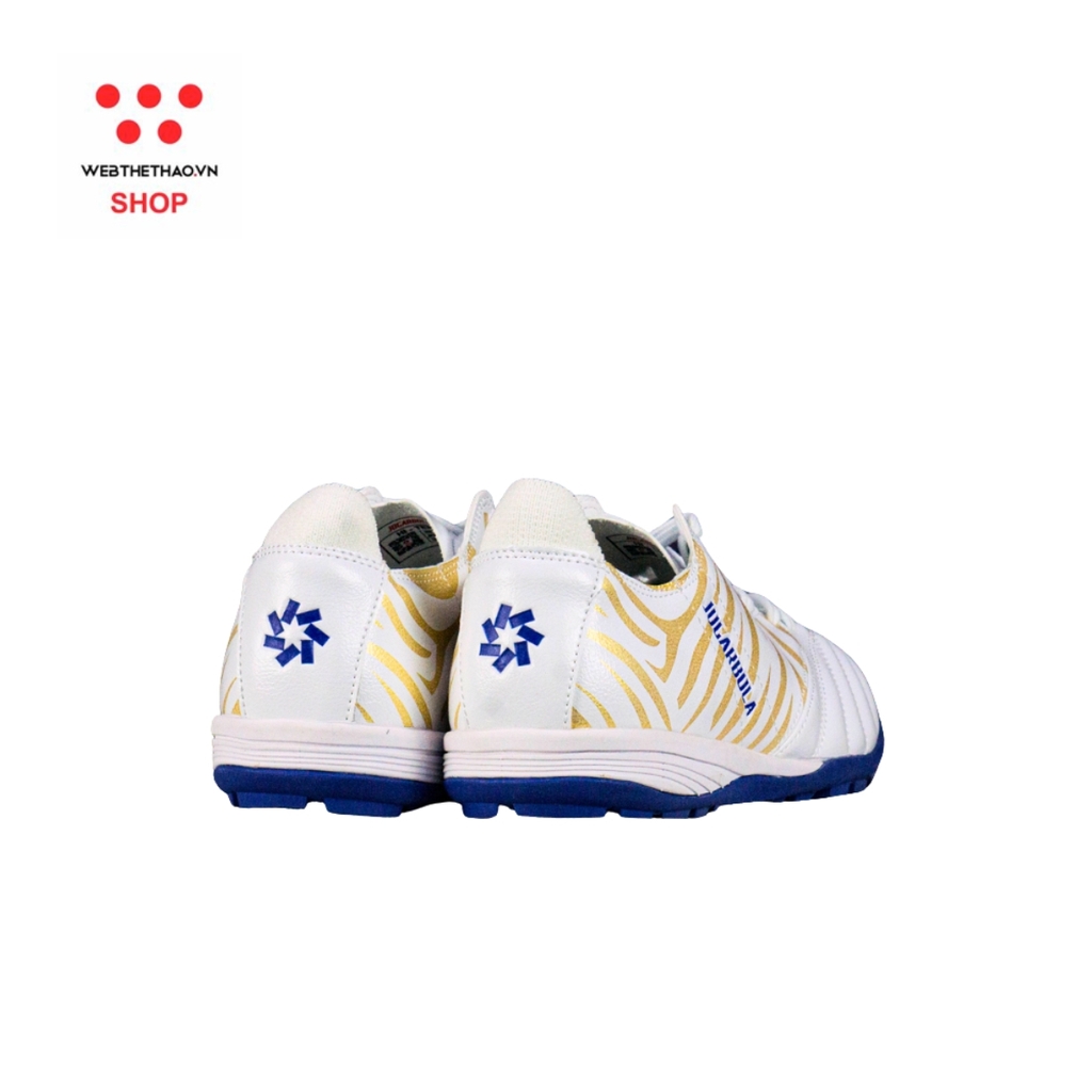 Đế giày làm từ cao su chuyên dụng cho sân cỏ nhân tạo, có độ bám tốt và khả năng chống trơn trượt hiệu quả, giúp người chơi tự tin tăng tốc, đổi hướng và giữ thăng bằng trong suốt trận đấu. Cấu trúc đế thấp, ổn định giúp giảm áp lực lên bàn chân, phù hợp cho cả tập luyện thường xuyên lẫn thi đấu phong trào.