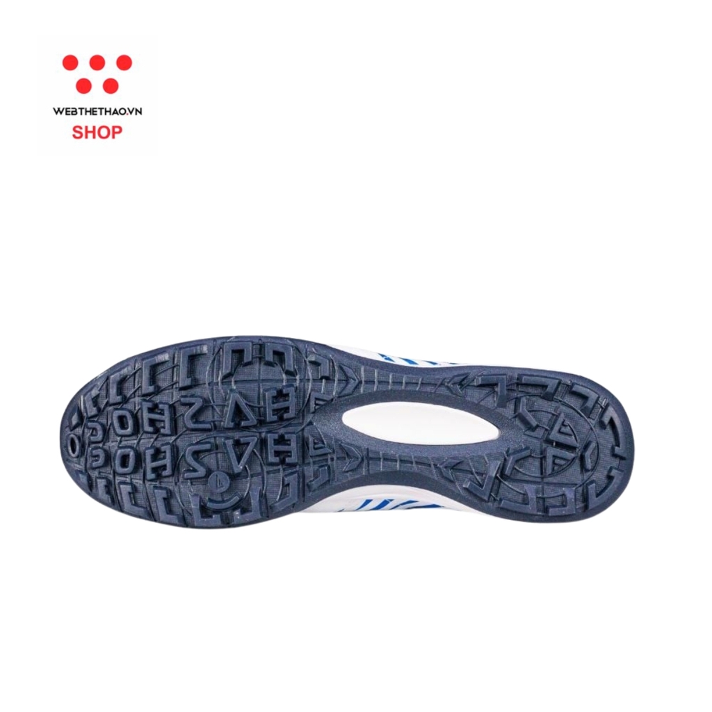 Đế giày làm từ cao su chuyên dụng cho sân cỏ nhân tạo, có độ bám tốt và khả năng chống trơn trượt hiệu quả, giúp người chơi tự tin tăng tốc, đổi hướng và giữ thăng bằng trong suốt trận đấu. Cấu trúc đế thấp, ổn định giúp giảm áp lực lên bàn chân, phù hợp cho cả tập luyện thường xuyên lẫn thi đấu phong trào.